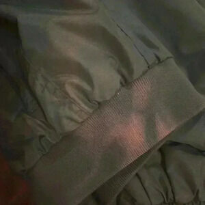 Super warm windbreaker outside with fleece lined inside. Standup zip collar. No hood. Preowned. color for screen black interior no rips or tears. Slight bit of paint missing from zipper. Approximately 25 inches pit to pit 31 inches long. Two front zipper pockets.NOTE stains on lower left of jacket as pictured