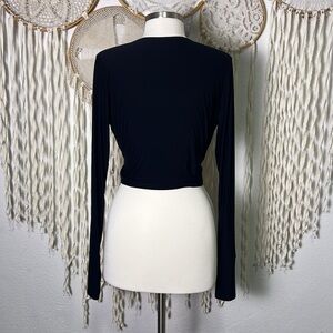 Commando Black Butter Wrap Long Sleeve Cropped Top with Thumb Holes M