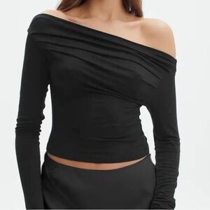 Commense Oblique Off-Shoulder Long Sleeve T-Shirt