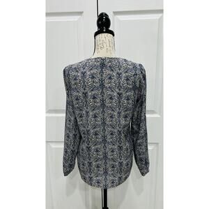 Comptoir Des Cotonniers 100% Silk Long Sleeve Blue Gray V-Neck Blouse Top Sze XS