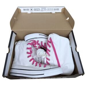 Brand new with box. Skip the hassle - these come fully laced and ready to wear with 96" premium elastic pink laces (plus a longer classic white pair).