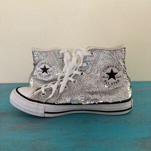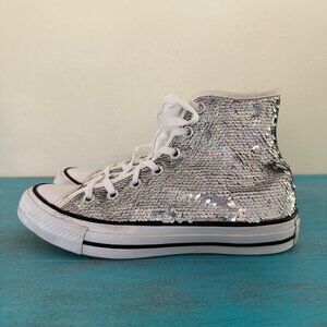 Converse Silver Sequin Chuck Taylor All Star High Top Sneakers Size 7 Womens