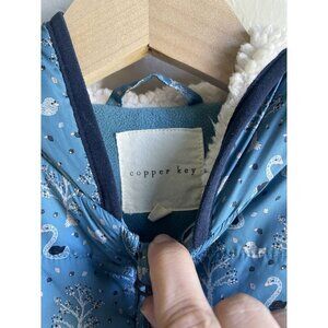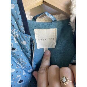 Copper Key Girls Size 4/5 Blue Swan Bird Tree Fleece Lined Full Zip Hoodie Vest