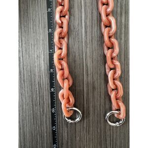 Add a pop of color and a touch of modern style to your favorite bag with this lightweight plastic chain. Made from durable, lightweight plastic/resin, this vibrant peach/coral/orange chain features chunky links and two circular hook rings at each end for easy attachment. It's a versatile accessory, perfect for updating a handbag, purse, or even as a unique multi-use accessory.