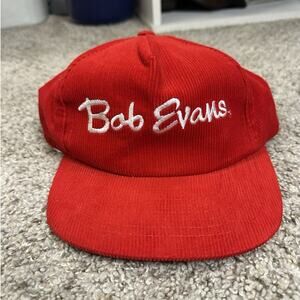 Corduroy Bob Evans Snapback Hat Cap Cotton Red White Eire Partners Inc Vintage