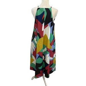 Corey Lynn Calter CORA Abstract Floral Halter Sleeveless Ruffle Midi Shift Dress Medium
