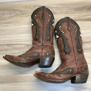 Corral G1042 Womens Studded Inlay 7M Brown Leather Inlay Snip Toe Western Boot