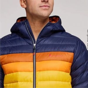 Cotopaxi Men’s XXL Fuego Hooded Down Puffer Jacket Blue Maritime Sunset NWT