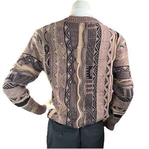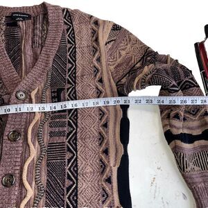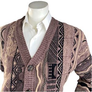 Cotton On Garments Sweater Mens M Brown Coogi Style Cardigan Knit Geometric