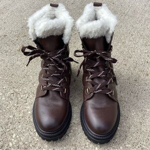 Leather upper/textile faux-shearling lining/rubber sole