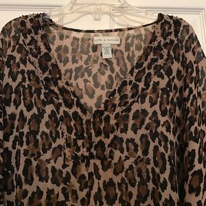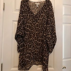 Leopard pattern V neck bathing suit cover up with gold beads around the neck