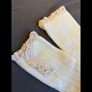 Cream colored over the knee thigh high knit socks with tan lace at the top. Only worn a couple times. If you have any questions please feel free to ask!