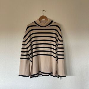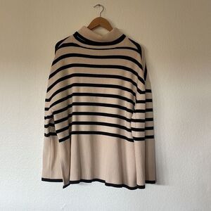 Cream and white striped turtleneck sweater