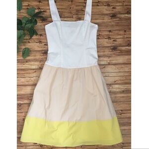 Cremieux Anna Tiered Color Block Drop Waist Sundress Yellow White NWOT