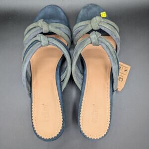 Crevo Footwear Sandals. Women's Size 11. Style: Rubie, Color: Dusty Blue, Leather knotted straps. Chunky heel, Slip on Shoes. New with tags and the original box. Boho, Retro, Party, Work, Office, Career, School, College, Preppy styles. No blemishes that I am aware of. See photos for details. I will mail the box in a poly mailer unless you specify otherwise. It lowers the weight but could cause damage to the box.