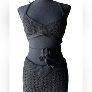 Crochet 2 pc Set Black Top & Stretchy Wide Leg Crochet Pants …