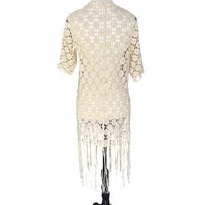 Crochet Lace Open Front Cardigan Kimono Fringe Overcoat Small Cream Western Boho