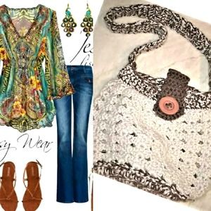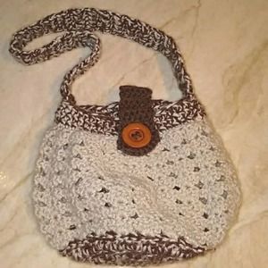 Crochet Shoulderbag TAN Boho Large Cute Button Gypsy Bohemian Festival Hippie