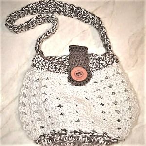 Crochet Shoulderbag TAN Boho Large Cute Wood Button Gypsy Bohemian Festival Hippie Y2K style Handmade Grannycore