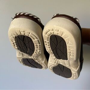 Experience the perfect blend of style and comfort with these brown and white boat shoes. Crafted for casual outings, they feature a classic design that complements any outfit. The durable construction ensures long-lasting wear, making them a versatile addition to your footwear collection. Size Women's 9. In great condition!