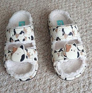 You’ll be feeling fine in the Squishmallows Cozzzy Sandal featuring everyone's favorite calico: Cam the Cat. With an all-over print and plush lining, your feet will be cozy and cute in this squishy slide.