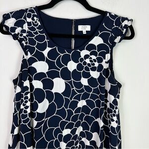 Crown & Ivy dress womens Size S Navy & White Floral Rayon Shift Dress Flutter