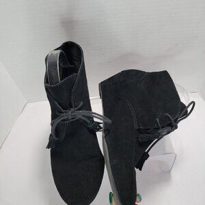 Crown Vintage Boots Womens 9.5 M Spark Black Leather Wedge Ankle Bootie Casual