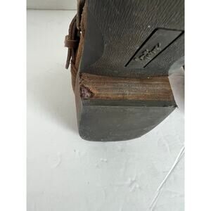 Crown Vintage Brown Leather Pointed Toe Studded Straps Block Heel Ankle Boot 8.5