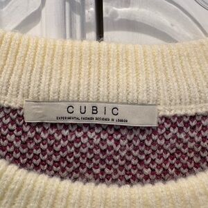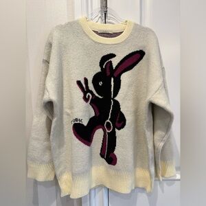 Bought in France never worn. Stay cozy and stylish with this cream sweater featuring a bold black and pink graphic. Perfect for adding a playful touch to your wardrobe.