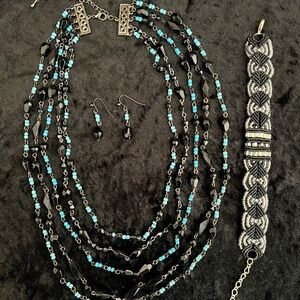 Curated Jewelry Set #22 - Necklace, Bracelet, Earrings (turquoise/black/silver)