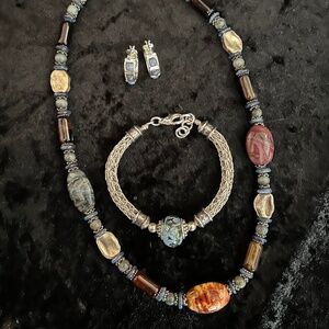 Curated Jewelry Set #32 - Necklace, Bracelet, Earrings (Blue/Silver/Multicolor)