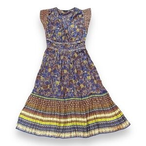 Current Air Pleated Floral Midi Dress Purple Combo Sz M