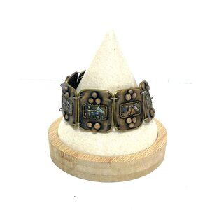 Custom Brass & Polymer Clay Square Link Adjustable Bracelet 7" L Unique Design