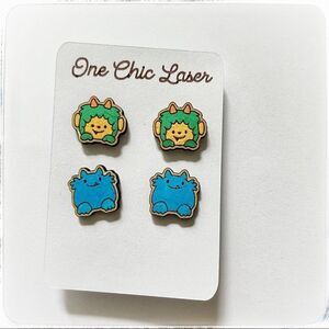 Adorable silly monster stud earrings. 2 pairs. Laser cut and engraved on my glowforge and hand painted and assembled by me.