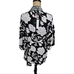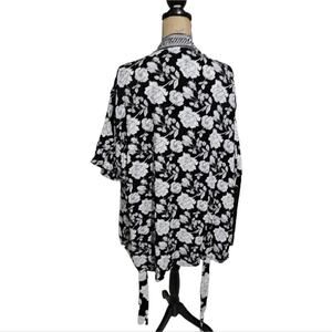 Cynthia Rowley Reversible Black and White Floral Kimono Plus Size 2X New