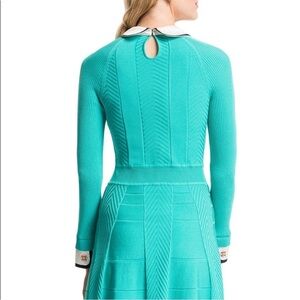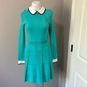 Cynthia Steffe Nola Textured Knit Fit Flare Shirtdress Chevron Dress Green Sz S