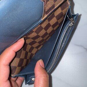 RARE DAMIER EBENE BRAZZA WALLET - Blue leather interior