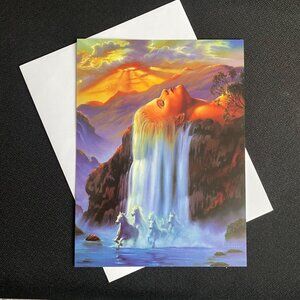 DAY DREAM by Jim Warren VTG Combo Pack Greeting Card & Magnet Waterfall Horses