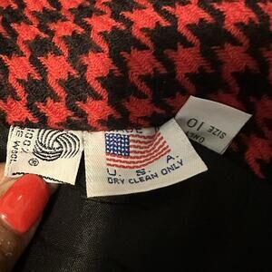 D’Angelo Women 10 Blazer Wool Houndstooth Lined V-Neck Black Red VTG
