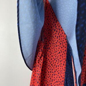 DEREK LAM Collective Handkerchief Dress Womens 40 US 4 Red Blue Midi Ruffle