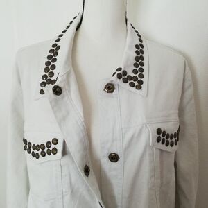 DG2 Diane Gilman Heavily Embellished Studded White Denim Snap Down Jacket 2X
