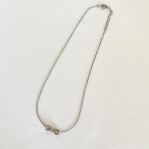 DIOR Cube CD Logo Rhinestone Silver Tone Pendant Necklace