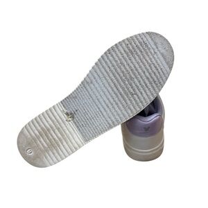 Features: White with screen print and translucent gel print, silver eyelets and Lavender insole
