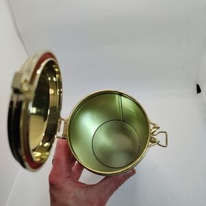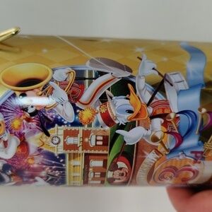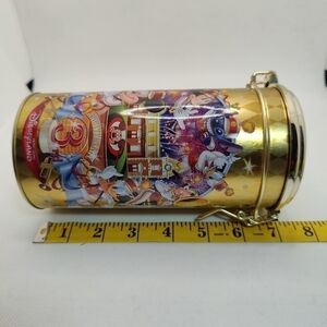This collectible Disneyland Hong Kong tin is mainly gold in color with a colorful image of Mickey, Minnie, Daisy, Goofy and Donald duck. Commemorating Hong Kong's third anniversary, it has a latch top lid with embossed detailing on the top. Please see all photos and let me know if you have any questions.