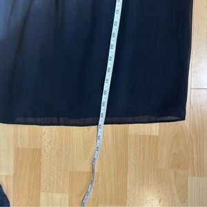 DKNY stunning 100% silk black babydoll v neck dress with a cinched waist adorned with floral embroidery. Size 6 in excellent preowned condition