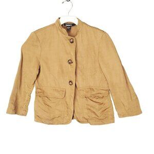 DKNY Blazer Womens SZ 2 Linen Blend Woven Structured Brown Pockets Breathable