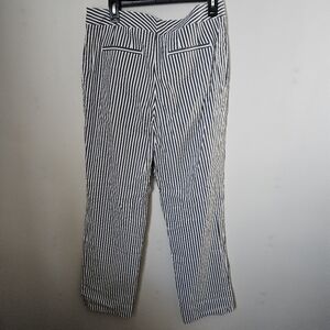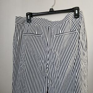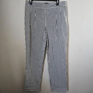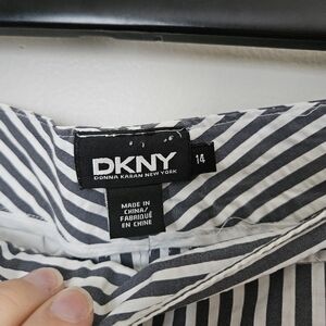 DKNY Chic Striped Trousers Gray White Print Casual Lightweight Neutral Size 14