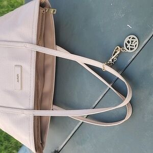 DKNY Croc Embossed Cream Leather Tote Bag with Tag