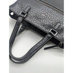 DKNY Gregorio textured faux-leather zip top medium tote satchel bag - BLACK