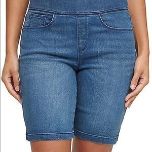 DKNY Jeans Pull-On Bermuda Shorts Medium Wash Stretch Denim Size S Comfy